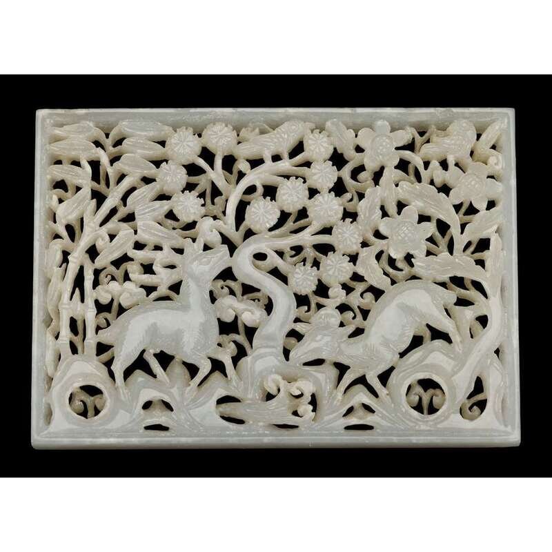 A Chinese white jade reticulated plaque with deer in foliage ming dynasty