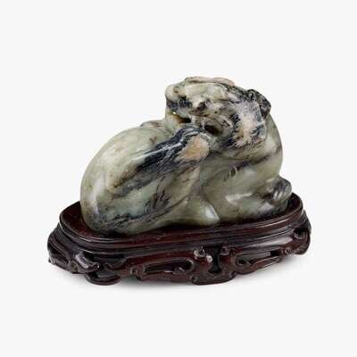 A Chinese mottled green jade recumbent qilin qing dynasty