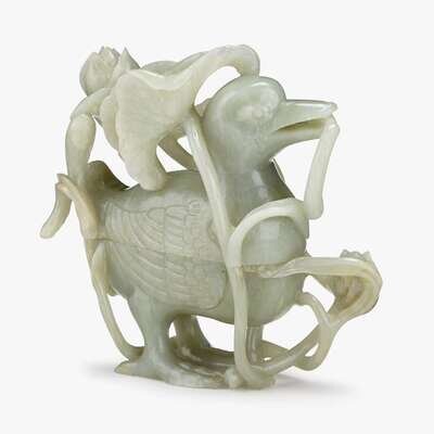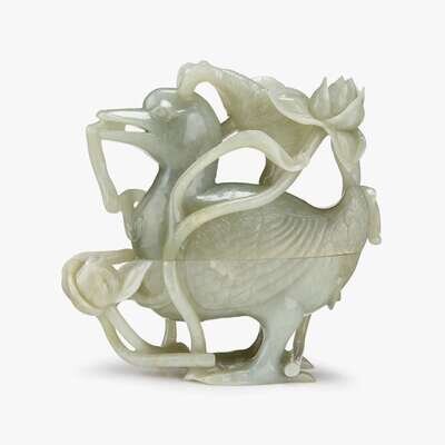A Chinese celadon jade duck-form covered box 18th/19th century