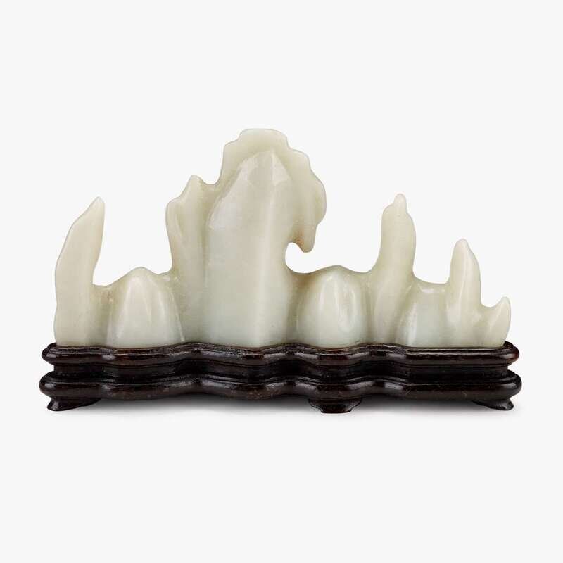 A Chinese celadon jade mountain-form brush rest qing dynasty