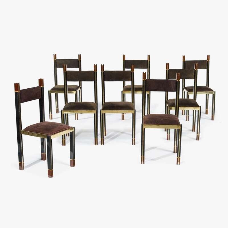 Brass, lacquered mahogany and upholstery.