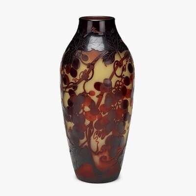 D'ARGENTAL TALL CAMEO GLASS VASE WITH BERRIES, FRANCE, CIRCA 1930