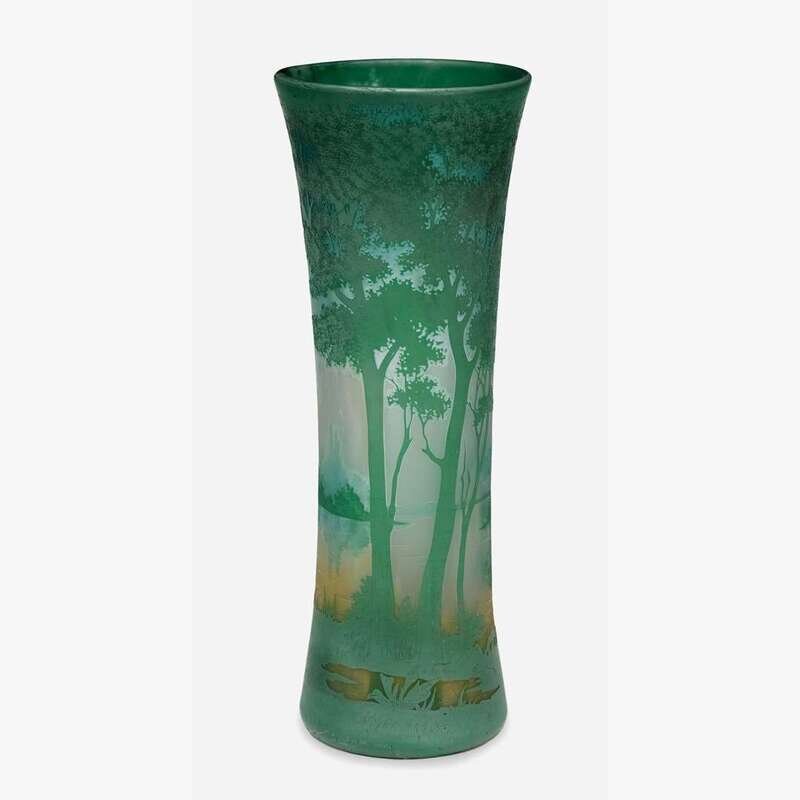 DAUM TALL CAMEO GLASS VASE WITH LANDSCAPE, CIRCA 1900