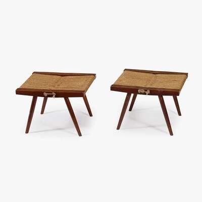 GEORGE NAKASHIMA (1905-1990) PAIR OF GRASS-SEATED STOOLS, 1968