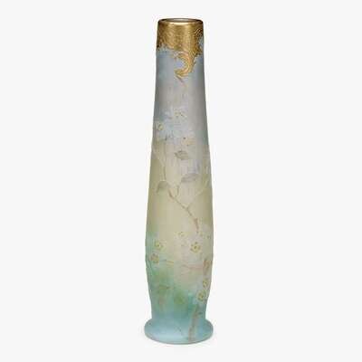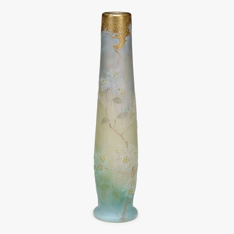 LEGRAS TALL CAMEO GLASS VASE WITH HAWTHORN, CIRCA 1900