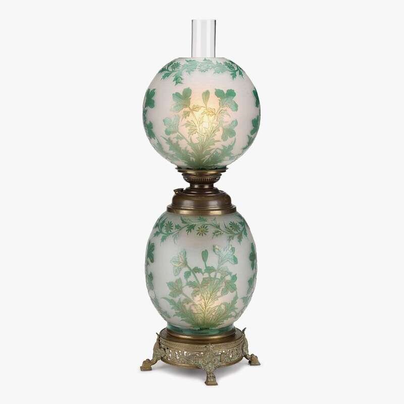 BRADLEY & HUBBARD CAMEO GLASS AND BRONZE OIL LAMP, LATE 19th CENTURY