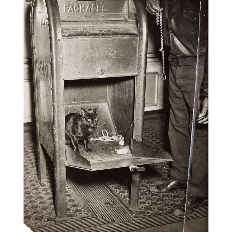 WEEGEE (1899-1968) BLACK CAT IN A MAILBOX