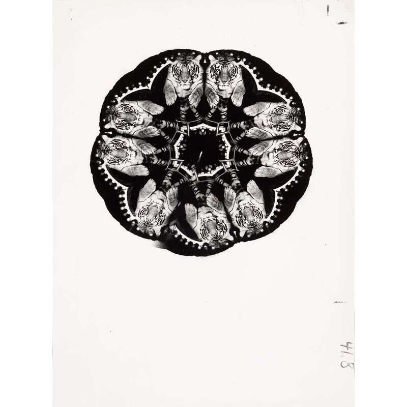 1950s. Kaledeiscopic print with cropping notations in an unknown hand in black crayon on margin recto, with Credit Weegee and Interiors magazine hand stamp and cropping notations in an unknown hand in red ink on verso; both with collection hand stamps on versos. Gelatin silver prints. largest: 9 15/16 x 8 1/8 in. (25.2 x 20.6cm) Unframed
