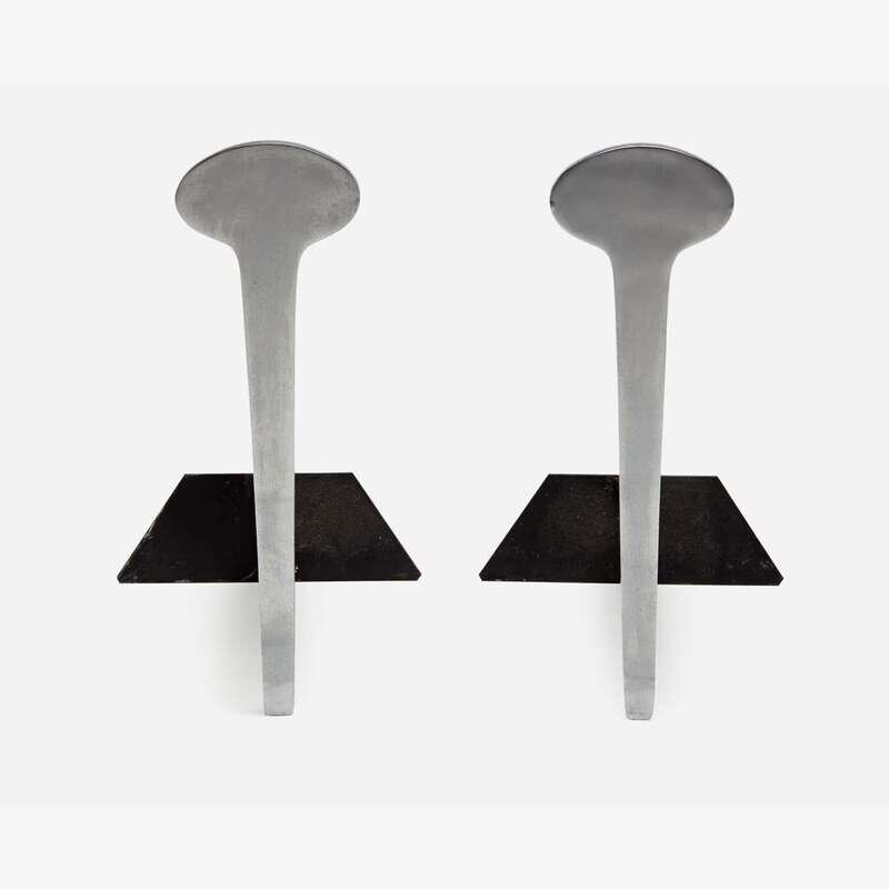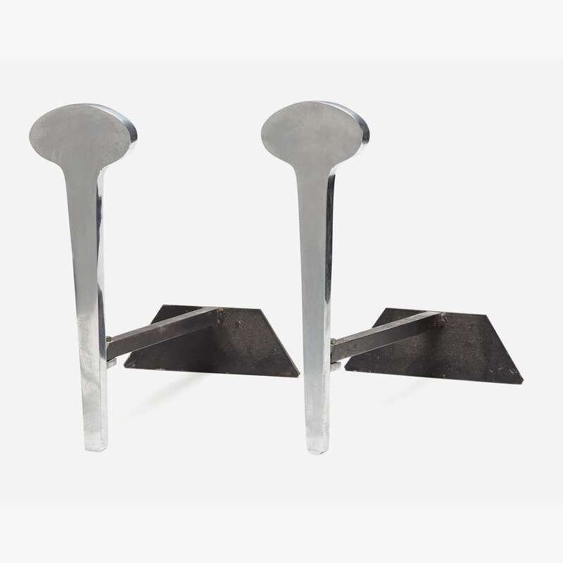 MODERN PAIR OF CHROMED STEEL ANDIRONS, CIRCA 1960