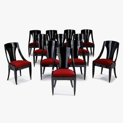 CONTEMPORARY SET OF TWELVE EBONIZED DINING CHAIRS, 20th CENTURY