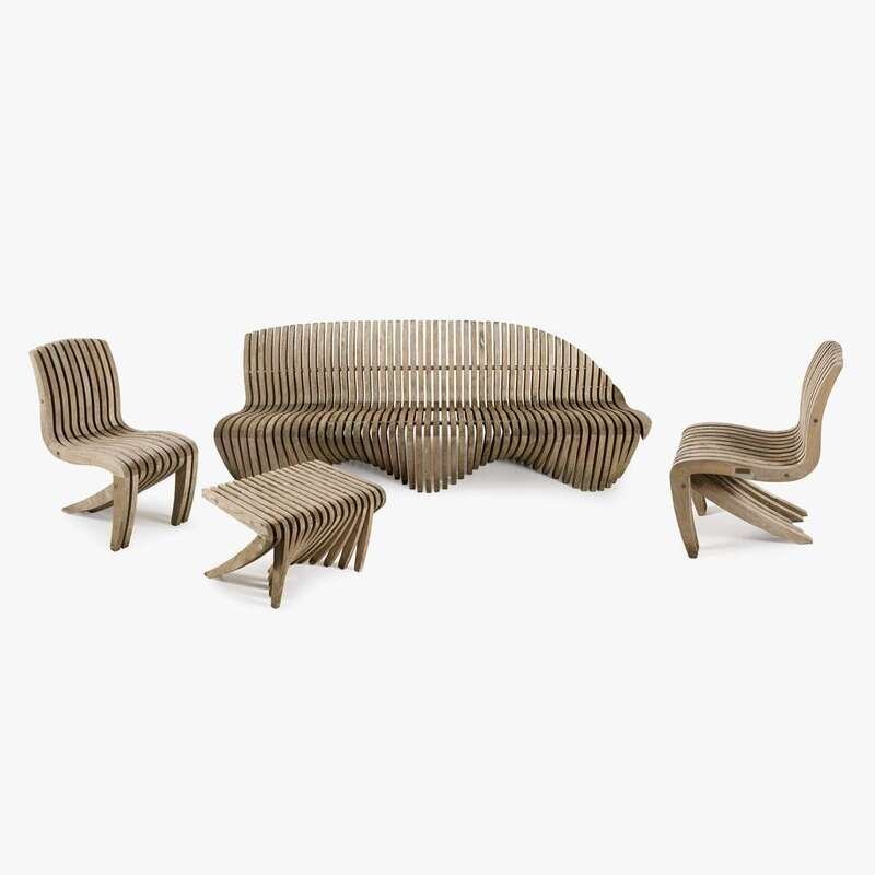 ROBERT TIFFANY "SPIRIT SONG" TEAK FURNITURE SUITE, CIRCA 2000