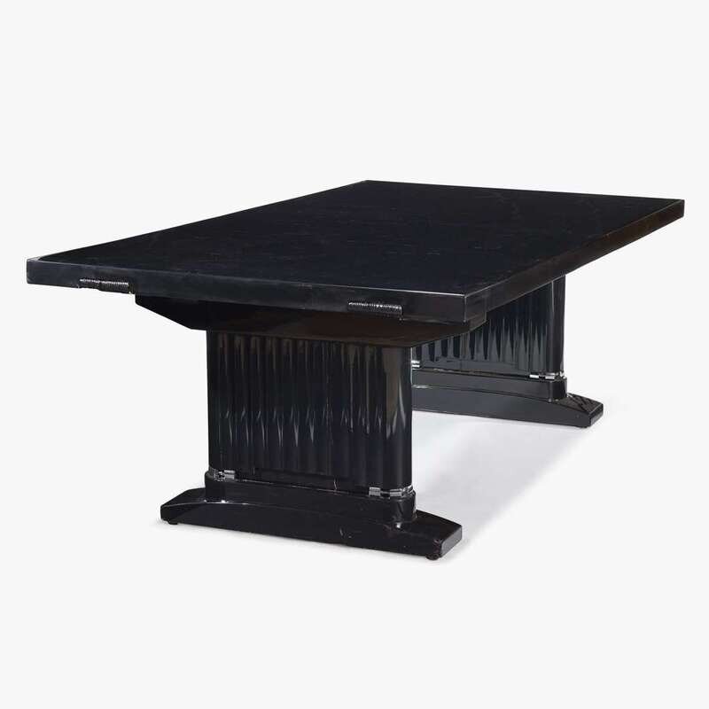 FRENCH EBONIZED OAK AND CHROMED METAL DINING TABLE, 20th CENTURY