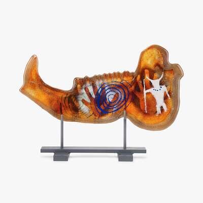 HENNER SCHRODER (B. 1955) "INDOMITUS 5" VITROGLYPH GLASS SCULPTURE, CIRCA 1998