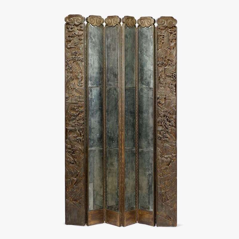 CHINOISERIE CARVED WOOD AND MIRRORED GLASS SCREEN, CIRCA 1925