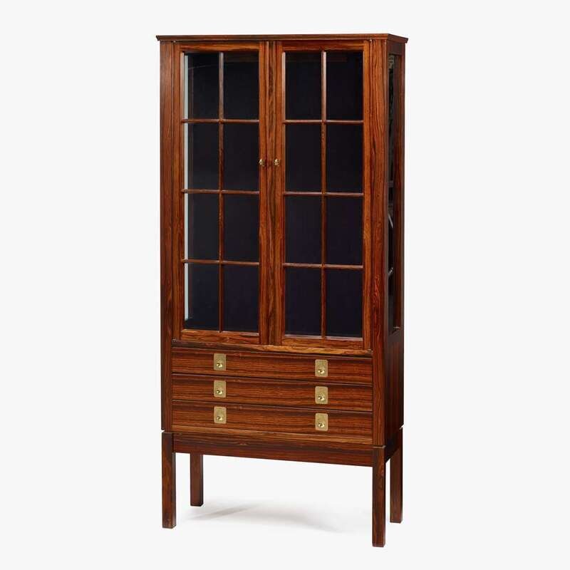 Rosewood, glass and brass Stamped: "Made in Norway" Applied Norwegian furniture control label.