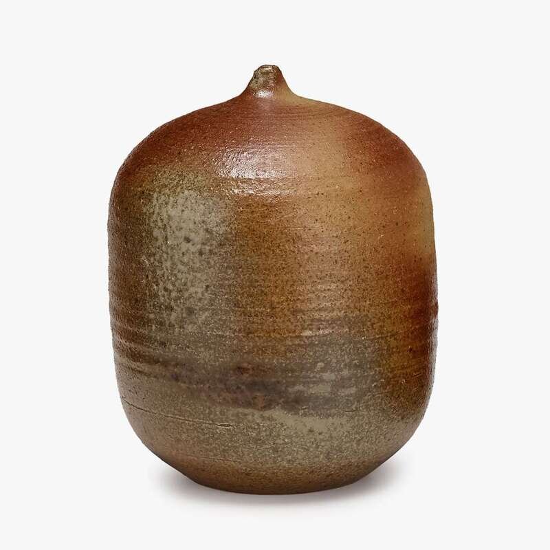 TOSHIKO TAKAEZU (1922-2011) ANAGAMA FIRED MOON POT WITH RATTLE, CIRCA 1987