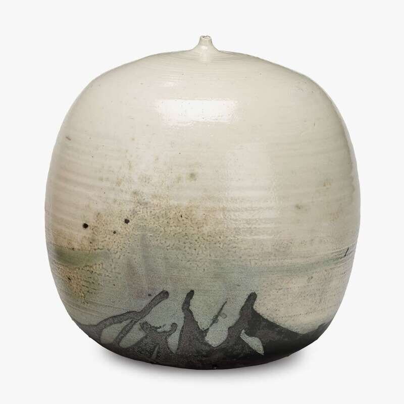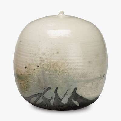 TOSHIKO TAKAEZU (1922-2011) GLAZED PORCELAIN MOON POT WITH RATTLE, CIRCA 1977