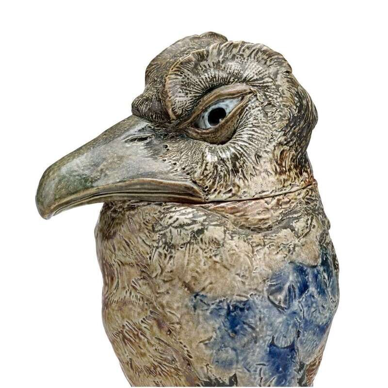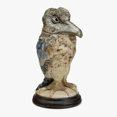 MARTIN BROTHERS LARGE SALT-GLAZED STONEWARE "WALLY BIRD" TOBACCO JAR, 1897