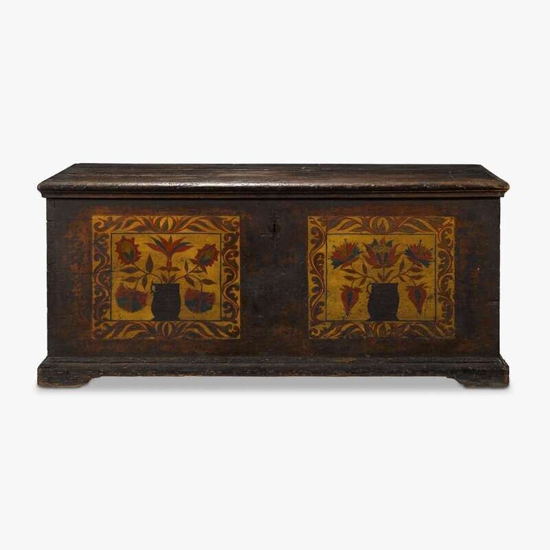 Painted and decorated pine blanket chest attributed to christian seltzer (1749-1831), jonestown, lebanon county