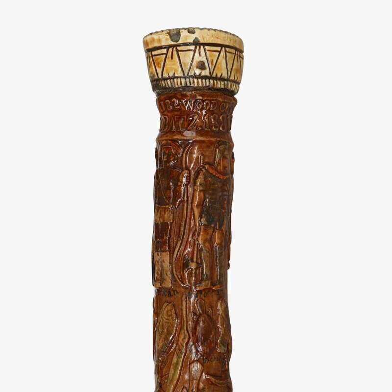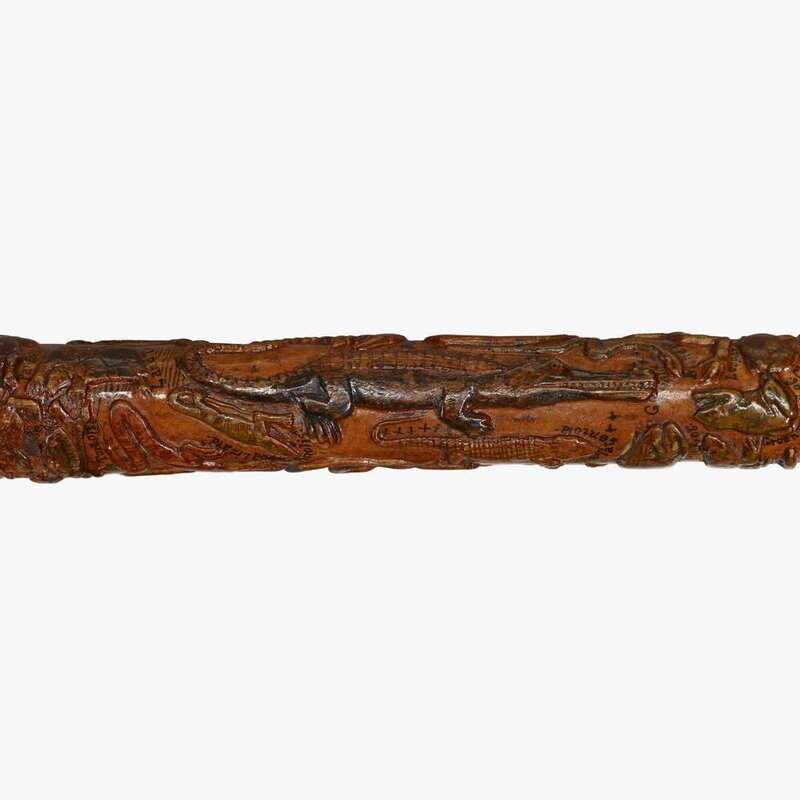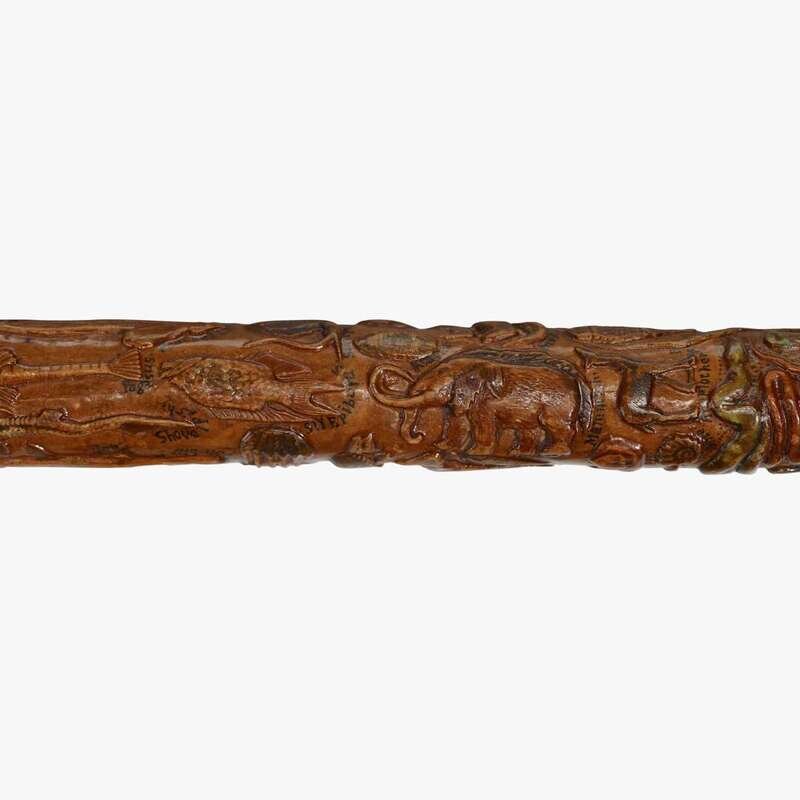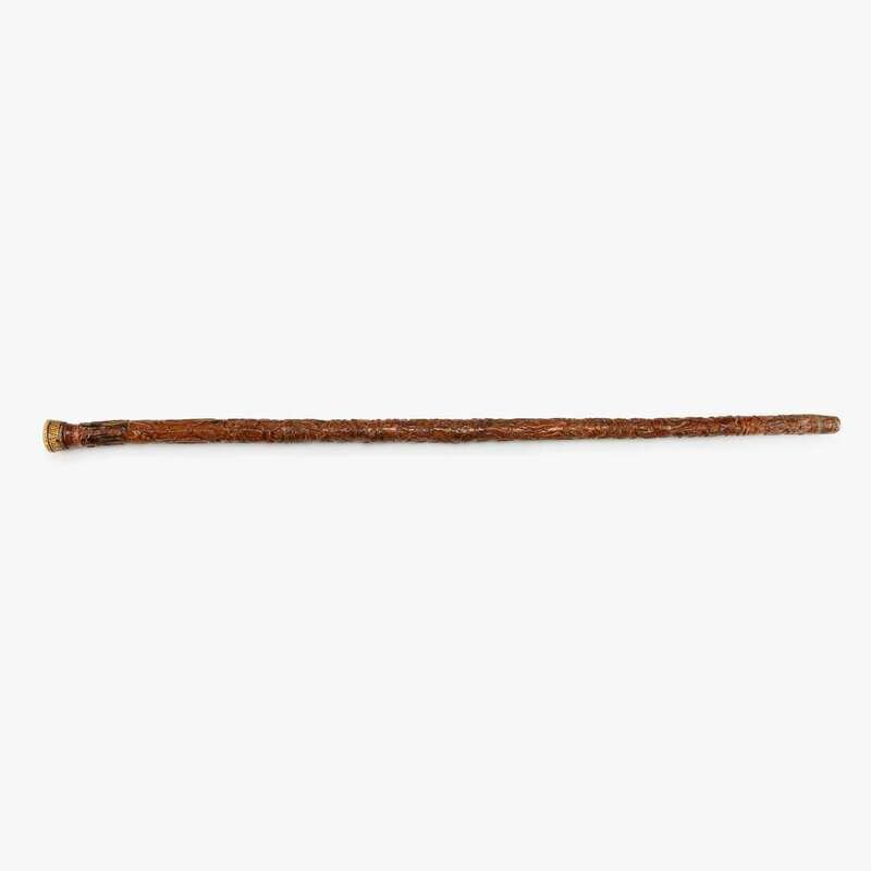 Intricately carved polychrome walking stick jose dominigo batz (1856-1936), california, dated, "1881"