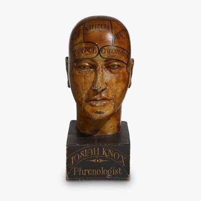 Carved and painted phrenology head late 19th century
