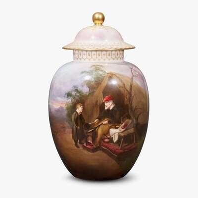 Royal Doulton parcel-gilt and hand painted porcelain covered jar early 20th century