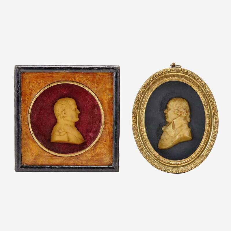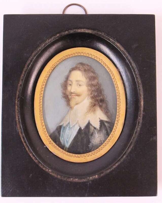 Comprising a French profile portrait of Napoleon, and another portrait, probably English, of a gentleman; together with a framed portrait miniature painted on vellum depicting Charles I. (3).
