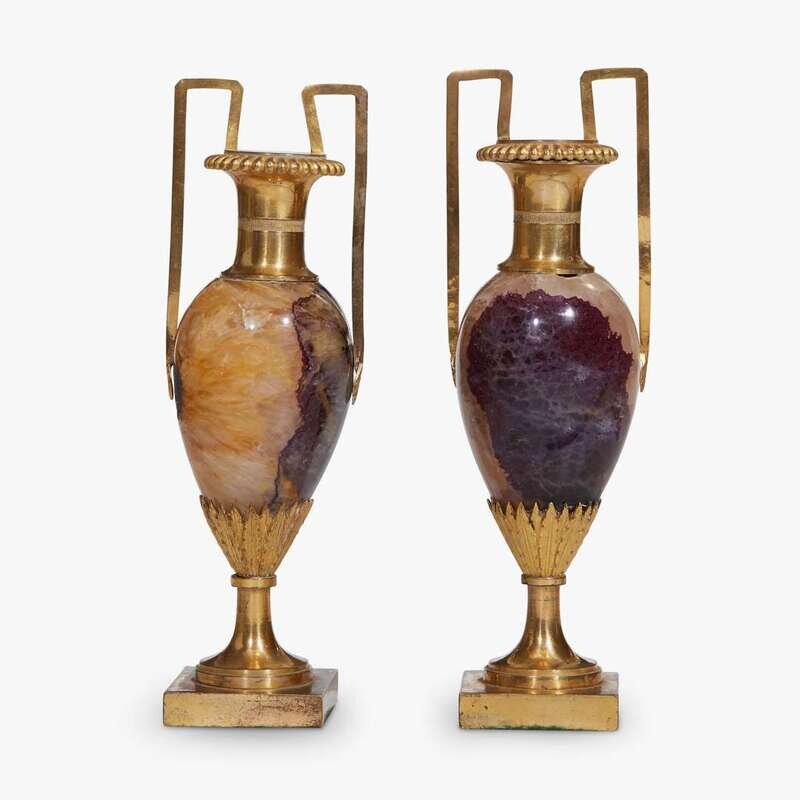 Pair of Regency ormolu-mounted blue john urns circa 1810