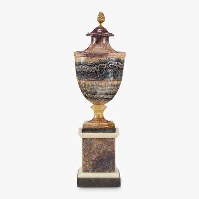 George III blue john urn on pedestal late 18th century