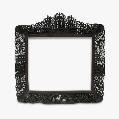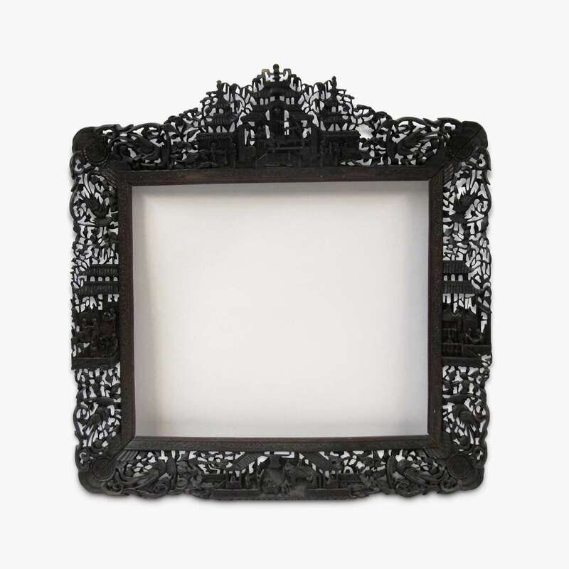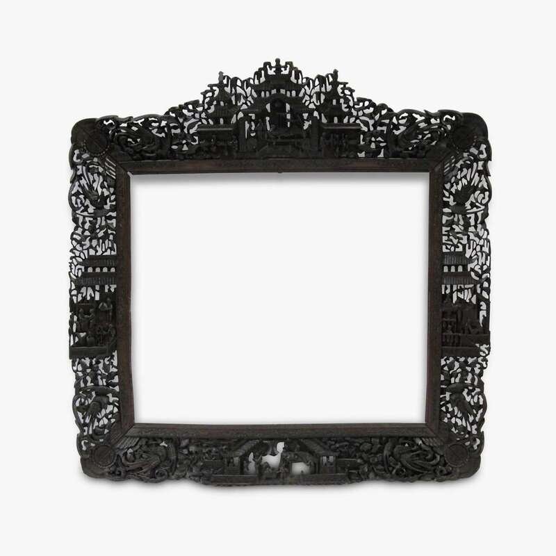 Pair of Chinese export carved and reticulated wood frames 19th century