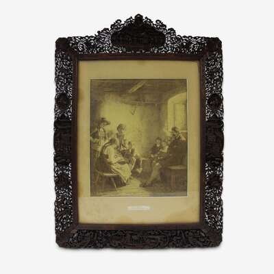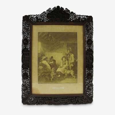 Pair of Chinese export carved and reticulated wood frames 19th century