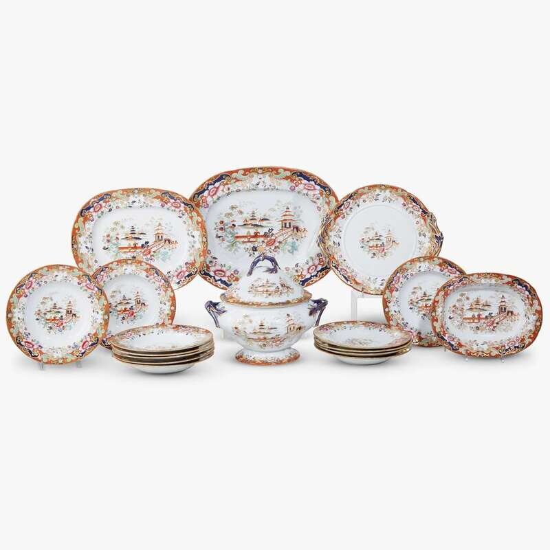 Group of Chinoiserie patterned ironstone serving pieces early 19th century