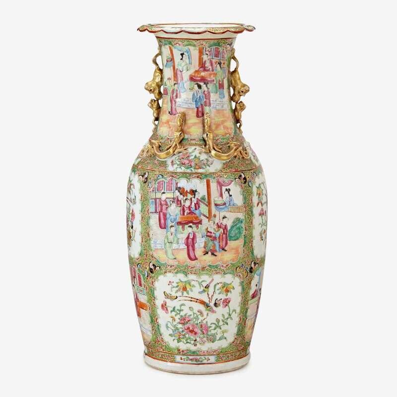 Large Chinese export porcelain rose medallion baluster vase second half 19th century