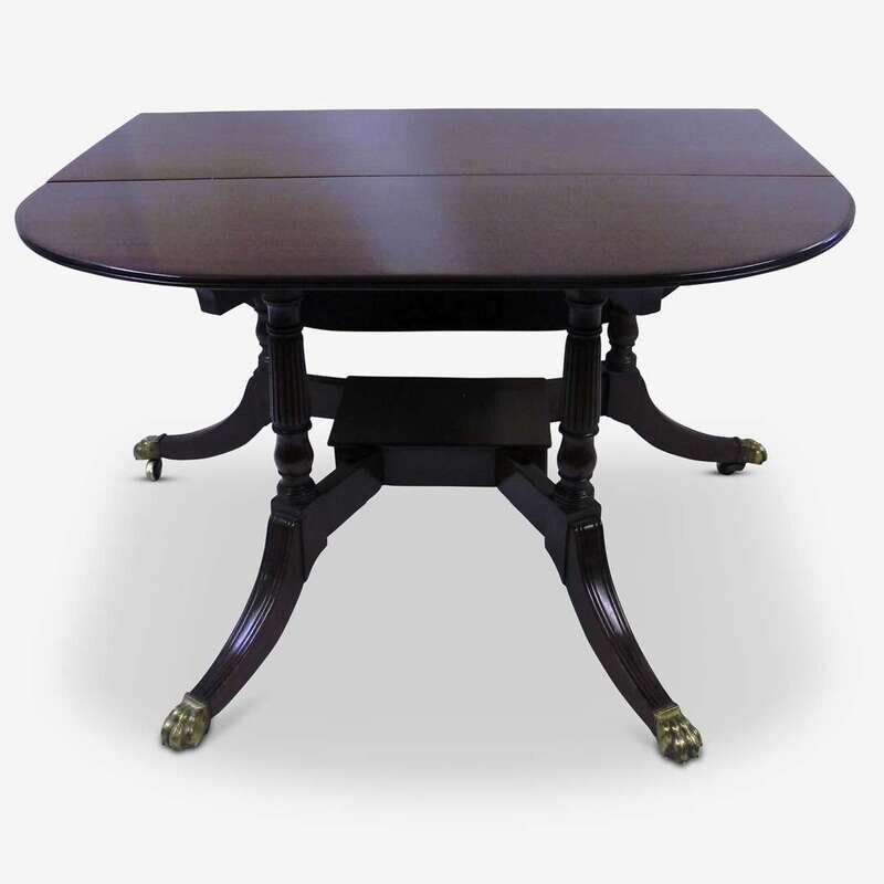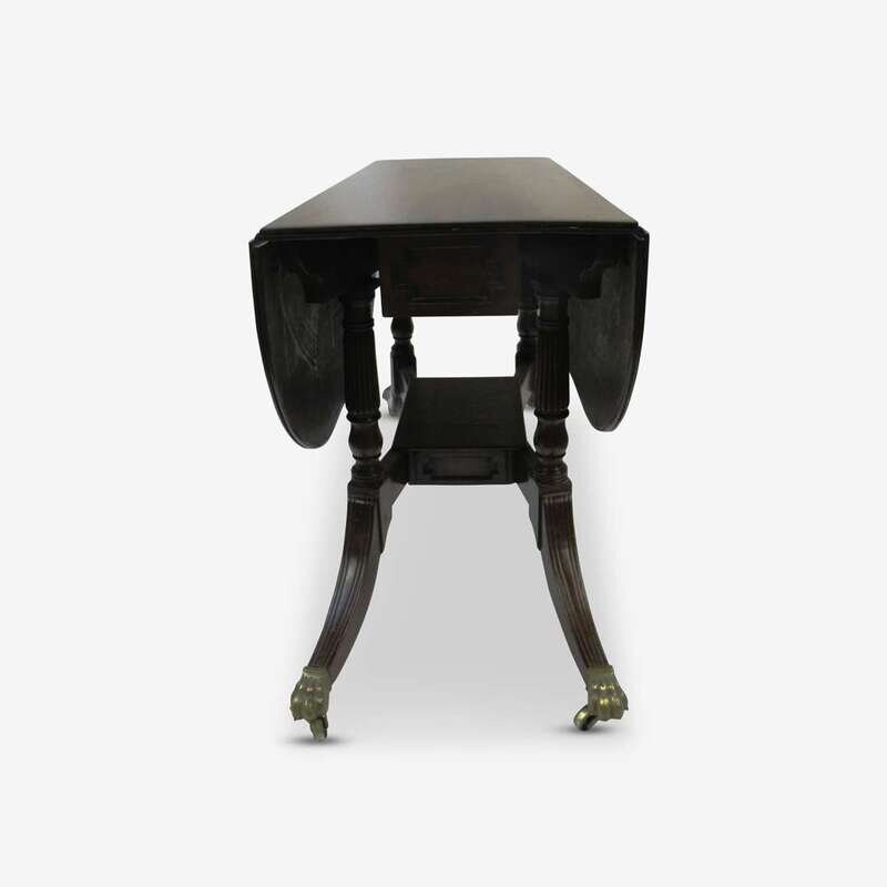 On pedestal base with four fluted splayed supports terminating in paw feet, raised on casters.