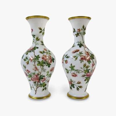 Pair of enamel decorated opaline glass vases second half 19th century