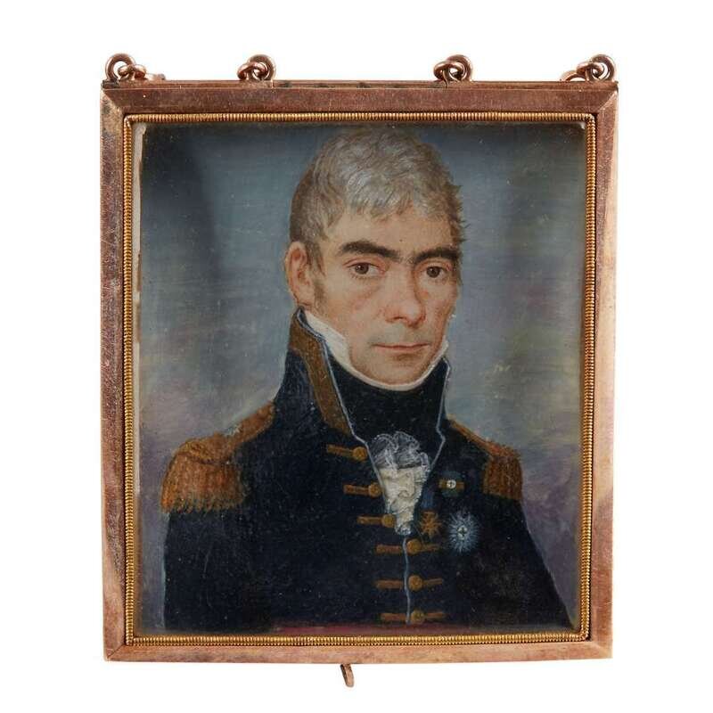 Comprising a portrait miniature of a gentleman attributed to Joseph Boze, dated 1805 to verso, a continental school portrait of a naval officer, circa 1815, a continental portrait of a gentleman, a portrait of a lady signed "J. Tremlett, Exeter", and a portrait of a lady signed "?Otto" by Samuel Otto. (5).