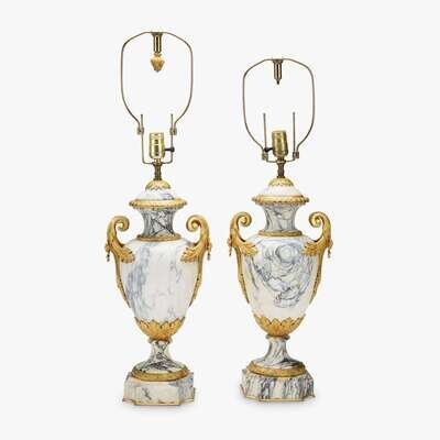 Louis XV style gilt bronze mounted bardiglio marble urns early 20th century