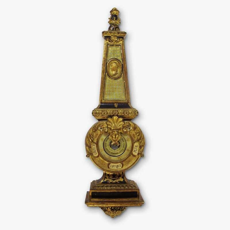 Louis XVI style gilt and polychrome carved wood barometer late 19th century