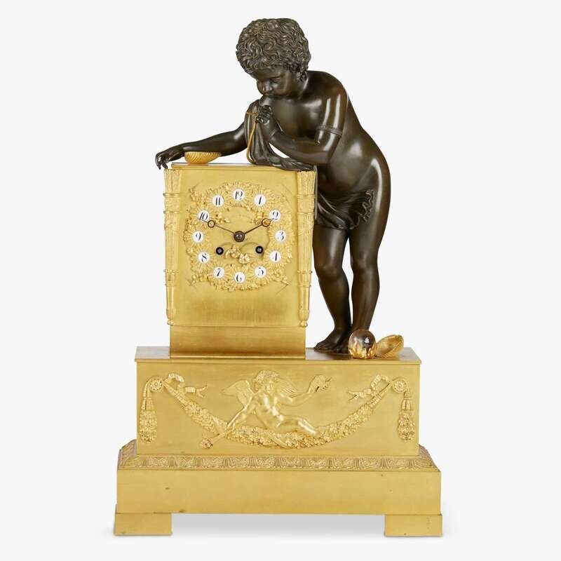 Empire ormolu and patinated bronze figural clock first quarter 19th century