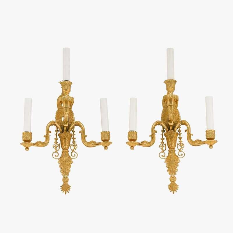 Pair of Empire style gilt bronze three-light sconces 20th century
