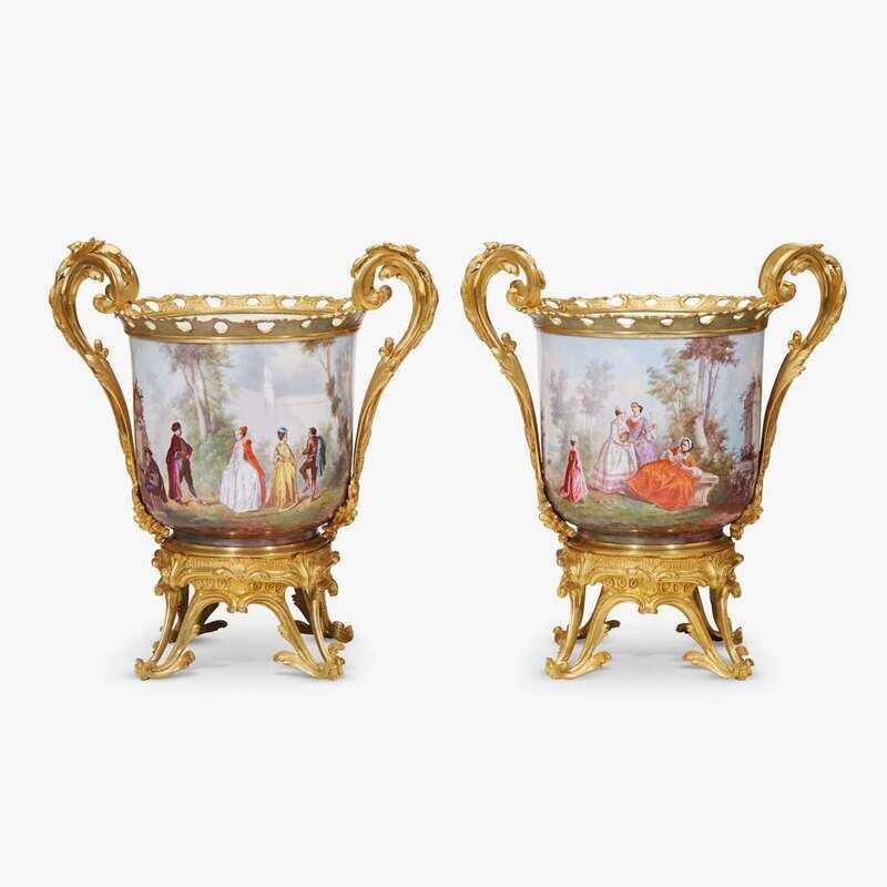 Pair of gilt bronze mounted Paris porcelain cache pots late 19th century