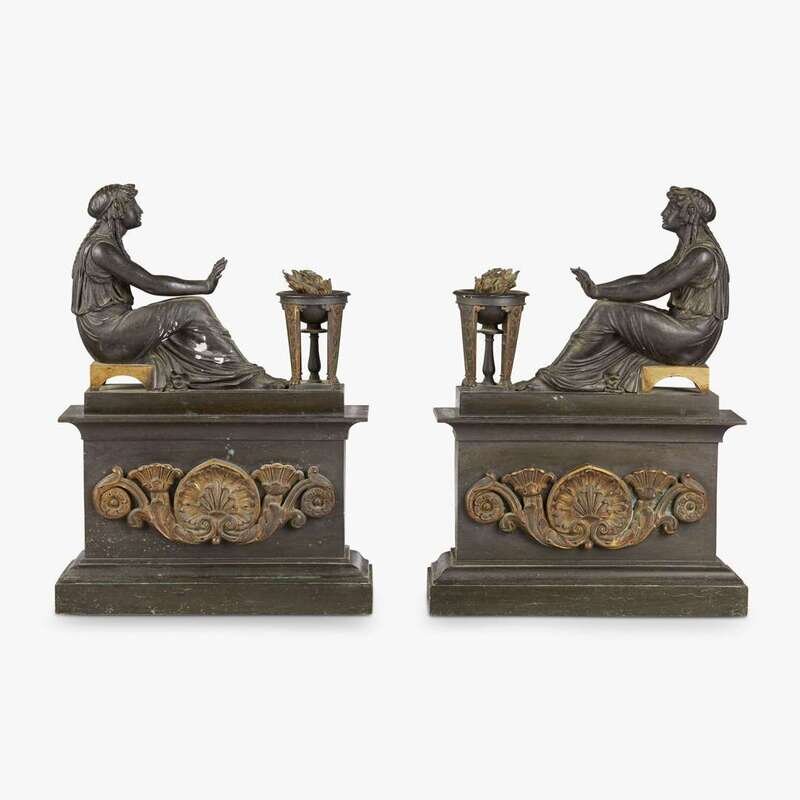 Pair of Louis Philippe gilt and patinated bronze chenets circa 1840