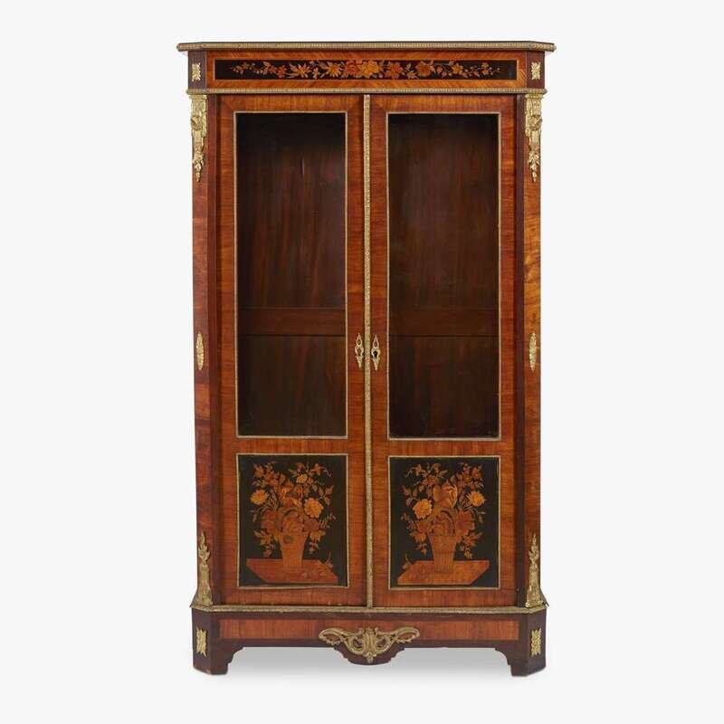 Napoleon III gilt brass mounted amaranth and fruitwood floral marquetry display cabinet late 19th century