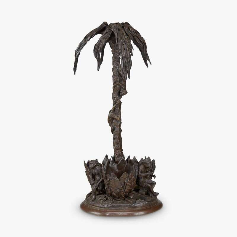 An unusal centerpiece with palm tree and monkeys; bronze, rich brown patina, signed in cast "Fratin".