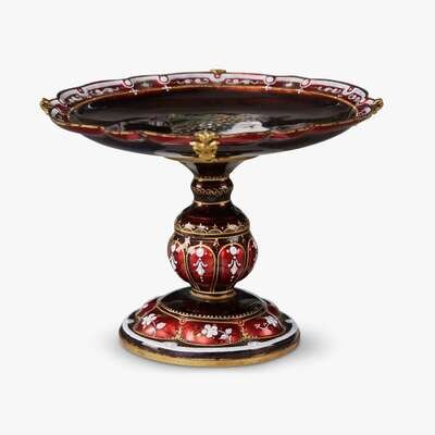 Fine Belle Époque painted and enameled copper tazza circa 1890