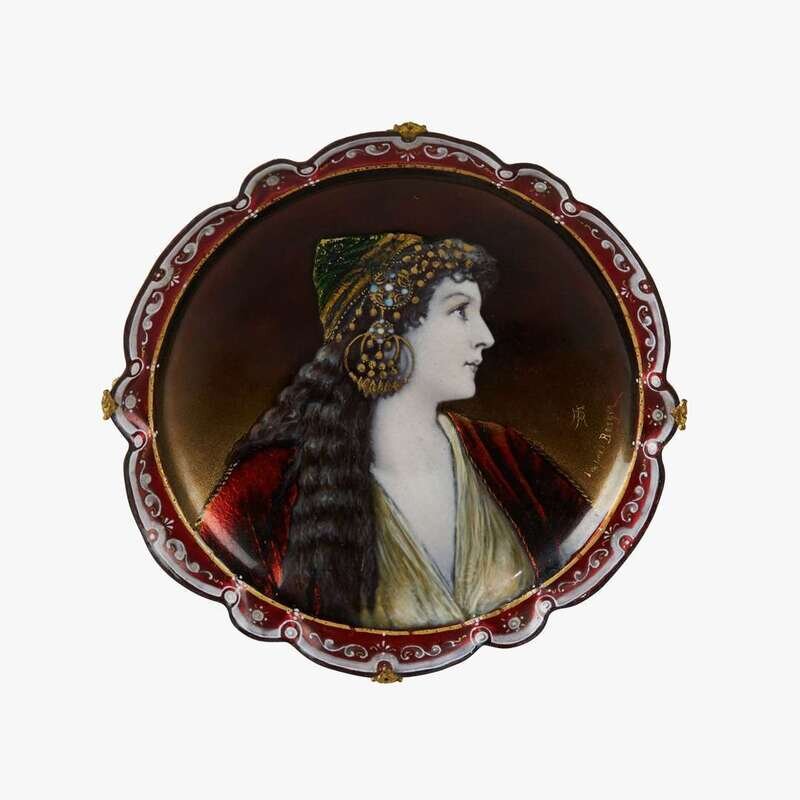 Finely painted to the well with the profile of a lady in Oriental costume, with artist's cipher and indistinctly signed, possibly "Berger".