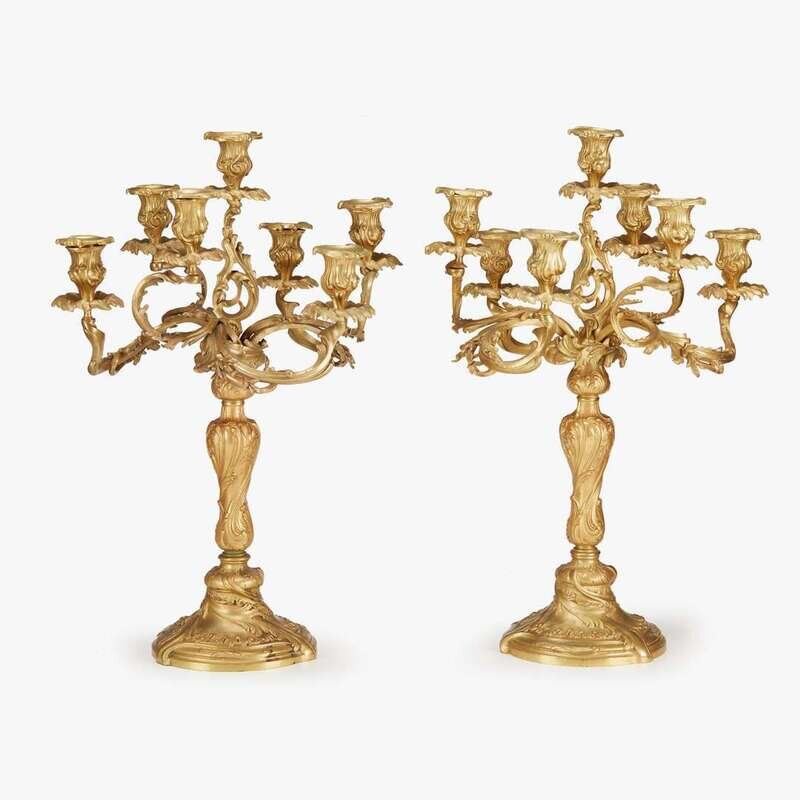 Pair of Louis XV style gilt bronze seven-light candelabra Thiebaut Frères, circa 1900