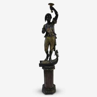 Large Venetian style gilt and polychrome painted carved wood and gesso blackamoor torchère circa 1830