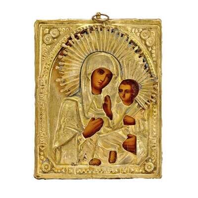 Two Russian gilt metal icons with oklads 19th century