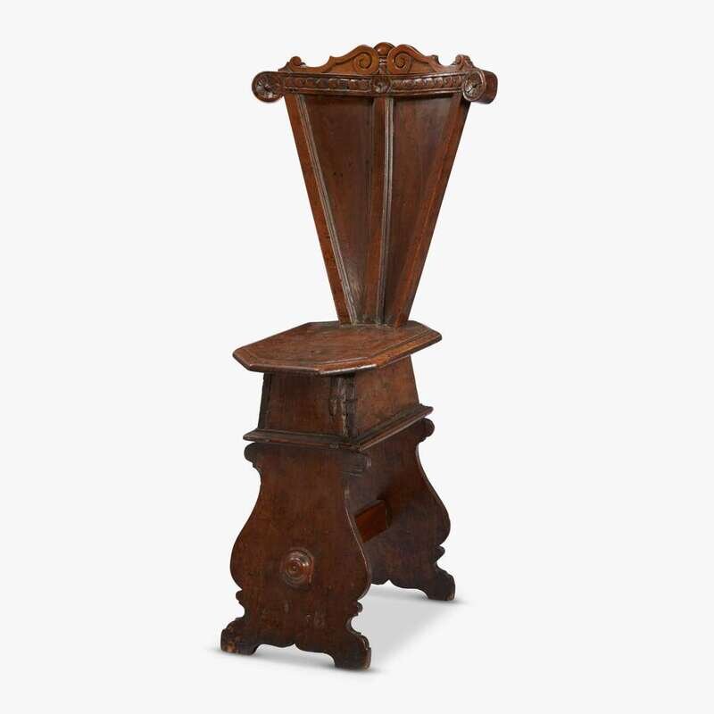 Italian walnut sgabello hall chair 17th century